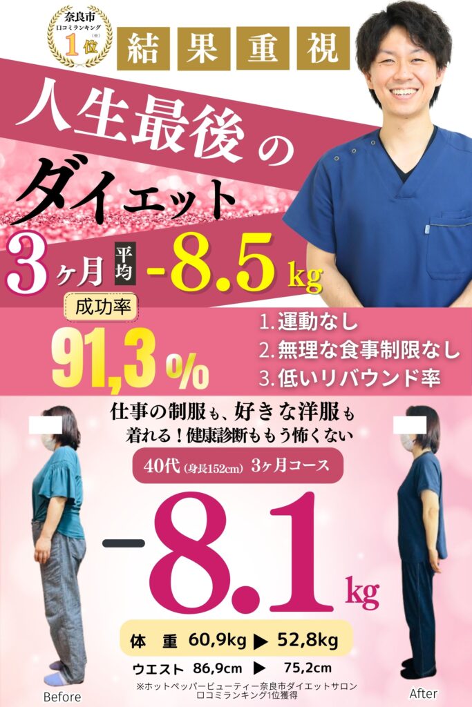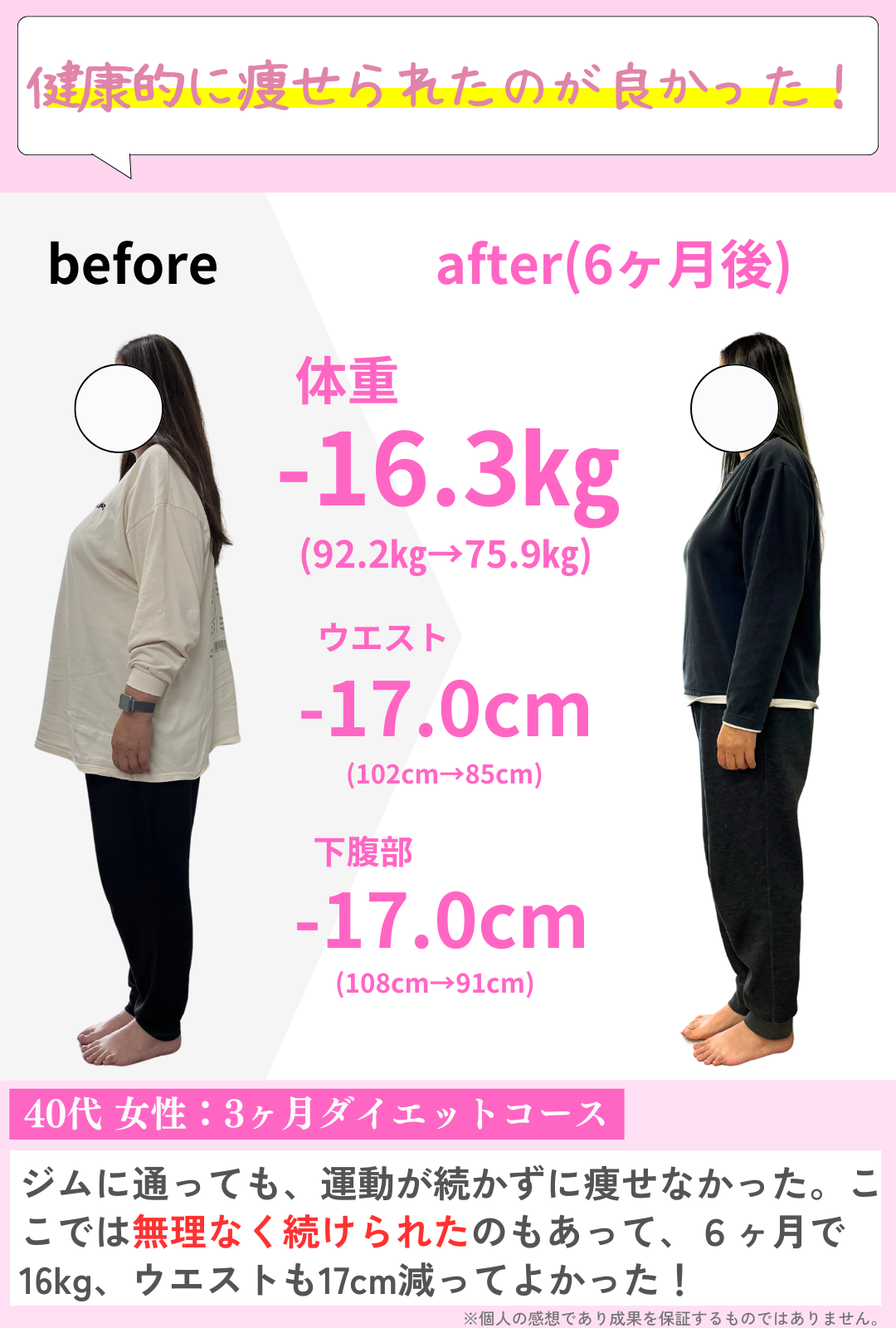 1年間ジムに通ってもほぼ効果が出ず、 当院でダイエットに成功されたお客様。 ダイエットは運動よりも食事が圧倒的に重要です!