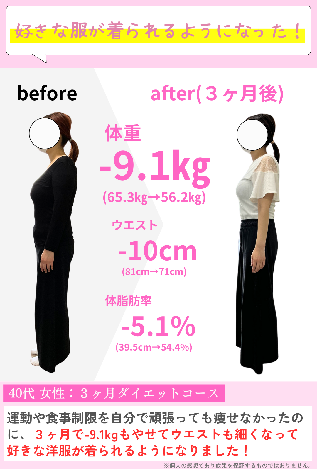 運動と食事制限をご自身で頑張ったが、全く痩せなかったお客様!着たい服が着れました!と嬉しいお言葉♪