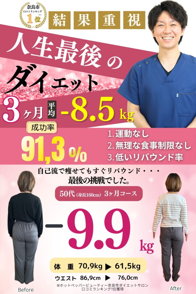 しかし、当院では期間中に痩せるのはもちろん、それ以降もリバウンドせずにどうやったらお客様が継続してずっと痩せ続けられるのか?
