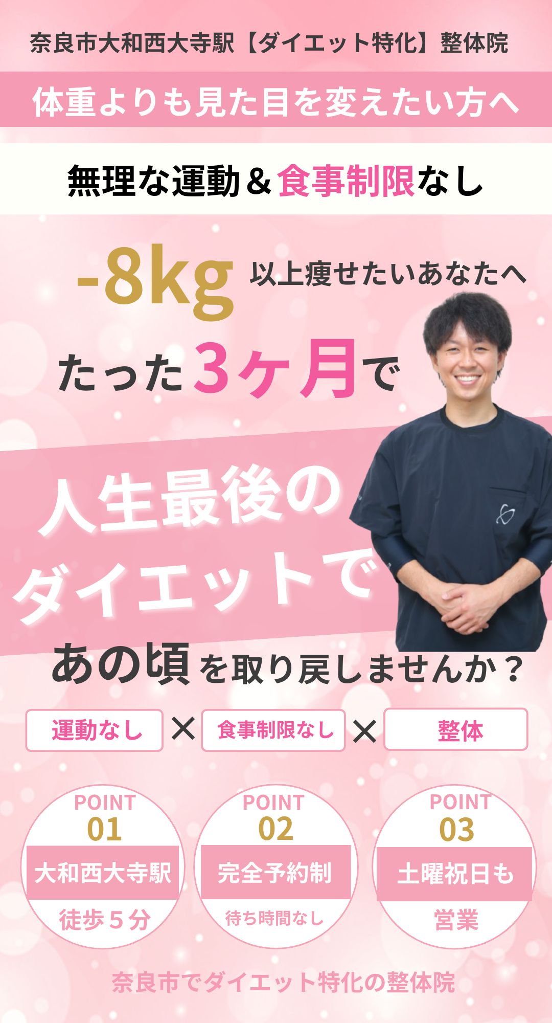 ダイエットを諦めていた方、何をやっても変わらなかった方の最後の砦となれるよう、お一人お一人に真剣に向き合っていきます。